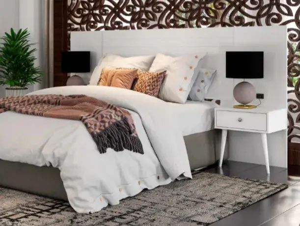 Versatilidade: pode ser mesa de cabeceira e divisor de ambiente