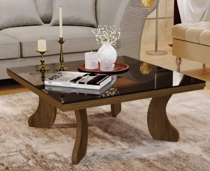 Acabamento brilhante, tipo laca UV, interno e externo