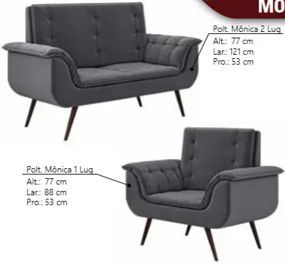 Sofá 2 lug: 82x165x78cm